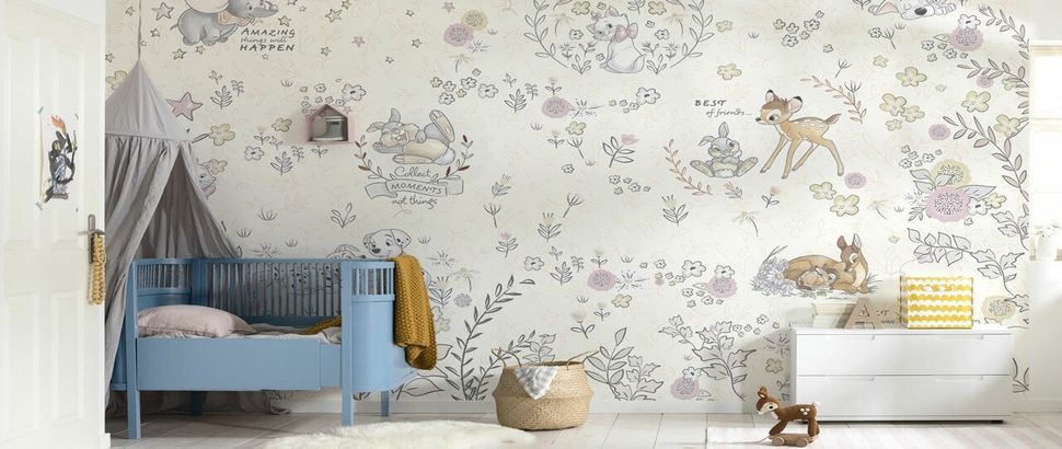Disney fotobehang van Bambi. Stampertje en Bambi op fotobehang in jouw kinderkamer!