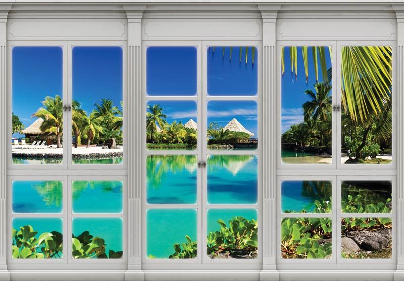 3D Fotobehang Uitzicht op Hawaii door het Raam
