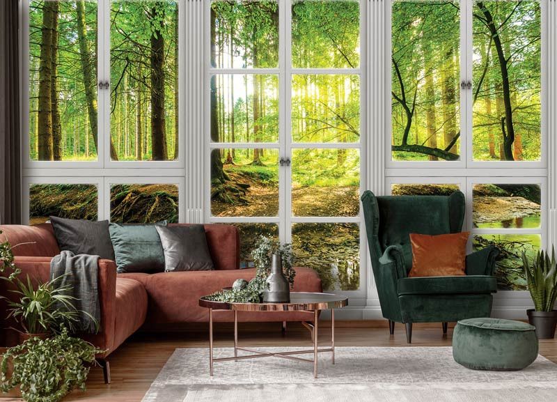 3D Fotobehang Uitzicht op het Bos vanuit het Raam