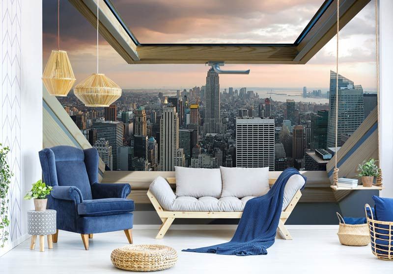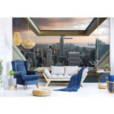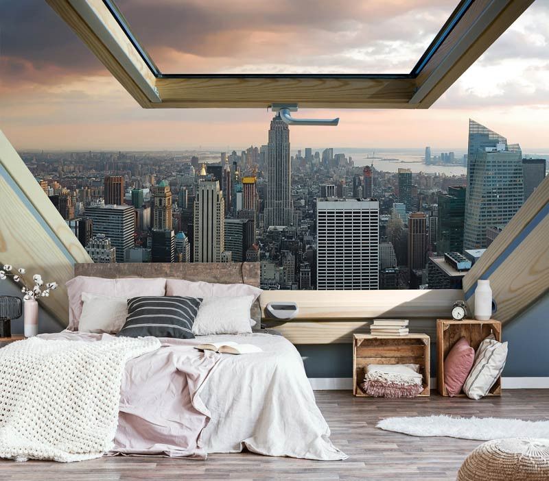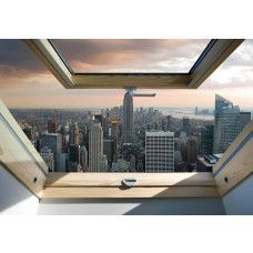 Vlies fotobehang van het uitzicht vanuit het dakraam op de Amerikaanse stad New York, weergeven in 3D.