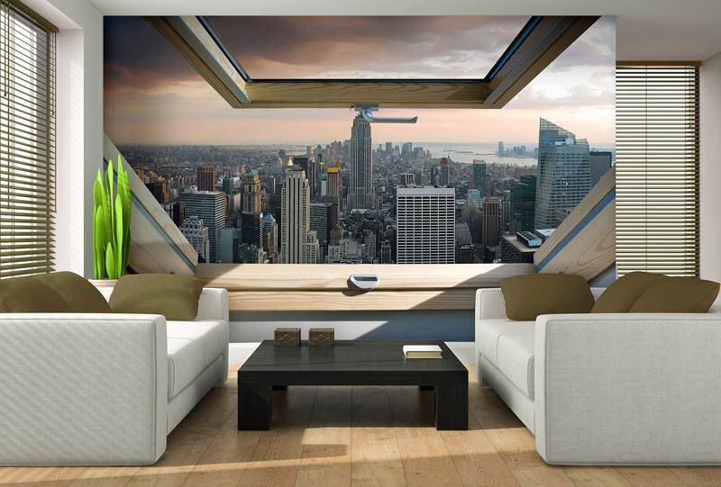 3D Fotobehang uitzicht op New York vanuit het raam.