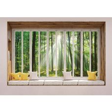 3D Perspectief Fotobehang Uitzicht op het Zonnige Bos vanuit het Raam