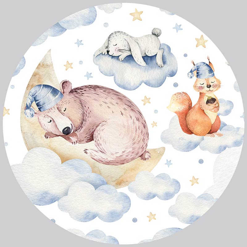 De behangcirkel van de slapende dieren is de perfecte aanvulling op de kinderkamer van elke jongen of meisje.