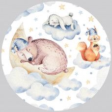 Behangcirkel met een slapende beer, eekhoorn en een haas. Zij proberen ervoor te zorgen dat uw kind zal slapen als een roos.