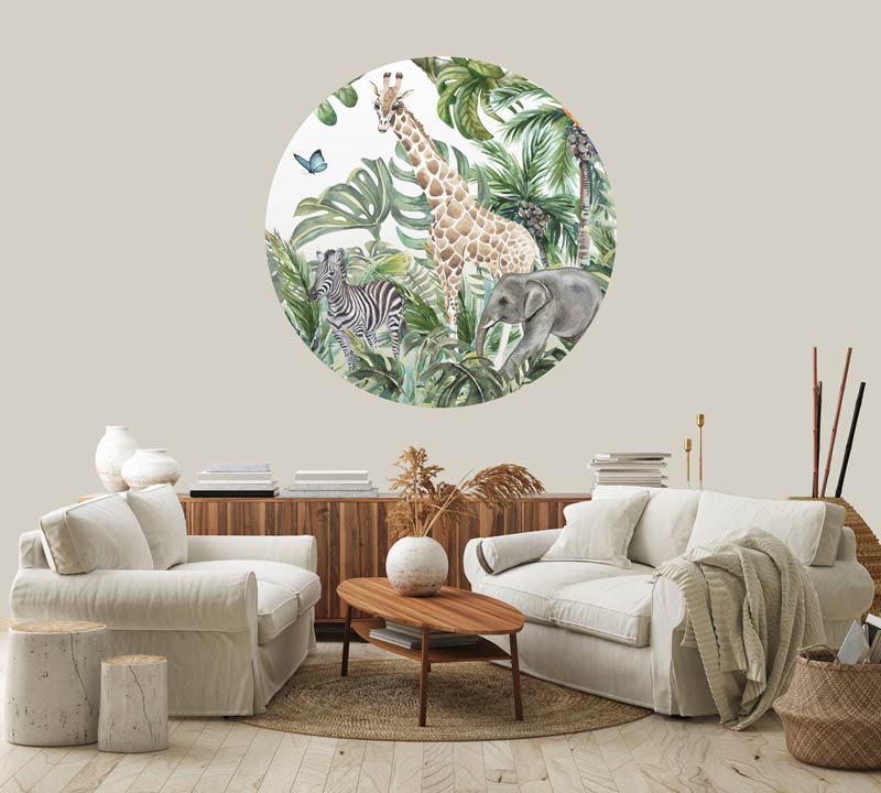 De jungle behangcirkel is een echte eyecatcher en zorgt voor een unieke uitstraling in elke ruimte.