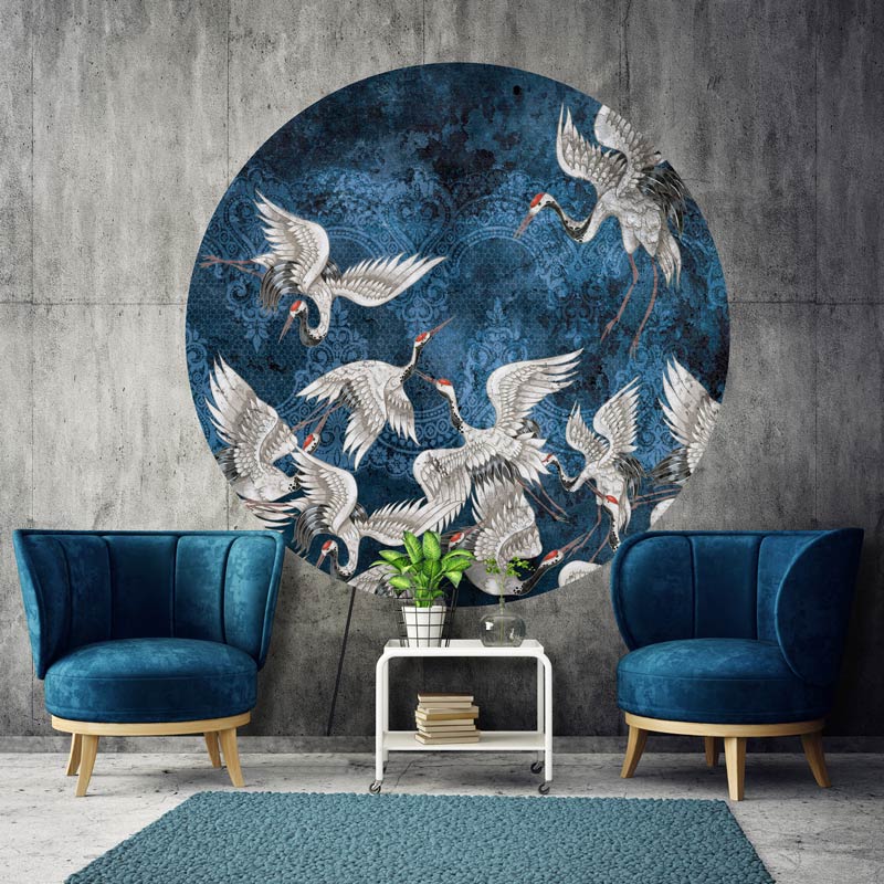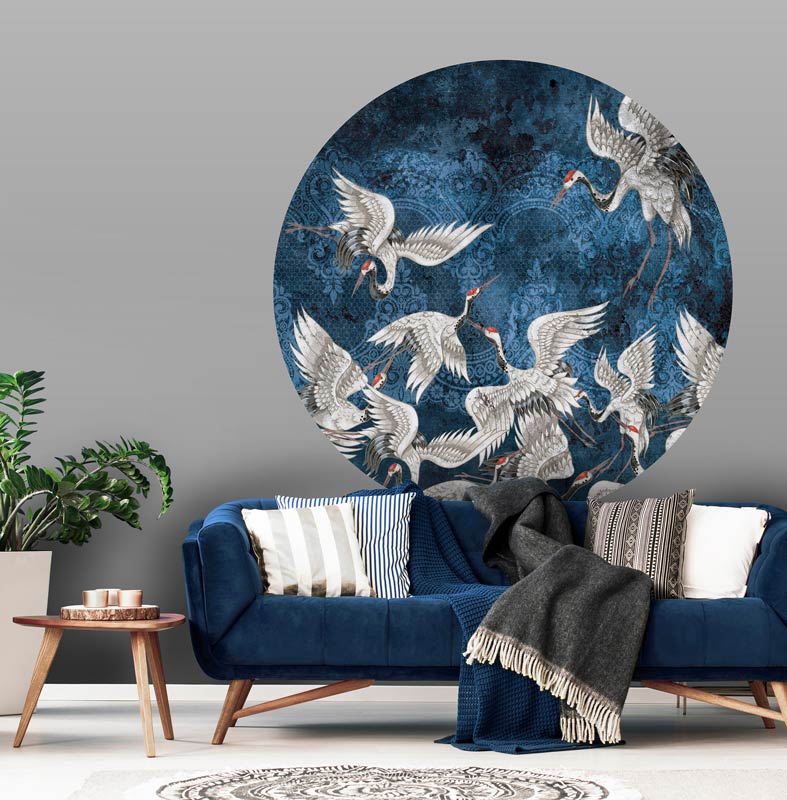De behangcirkel van de kraanvogels is een echte eyecatcher en zorgt voor een luxe uitstraling in elke ruimte.