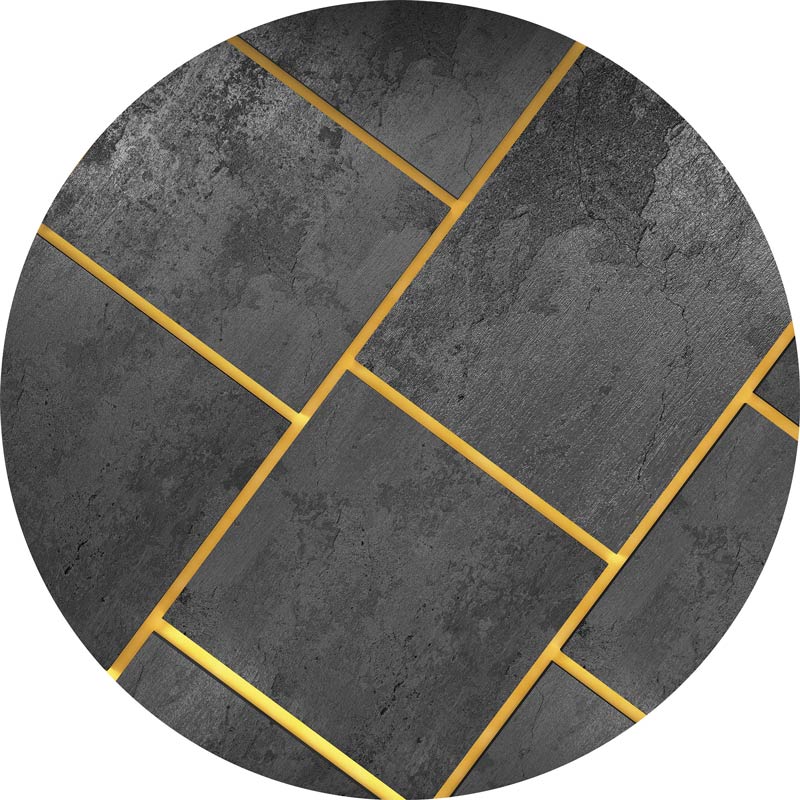 Behangcirkel van schitterende, zwarte tegels met prachtige, gouden voegen.
