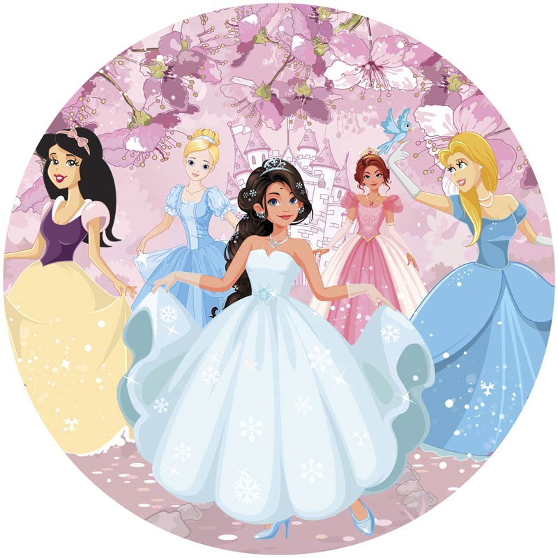 Een schitterende behangcirkel met dansende Prinsessen op weg naar het bal in het sprookjeskasteel.