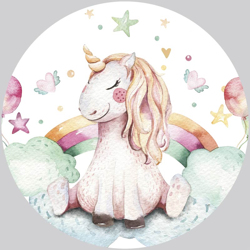 Fleur de kinderkamer helemaal op met een behangcirkel van deze schattige unicorn, zittend op de wolken.