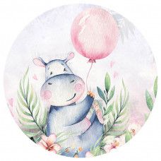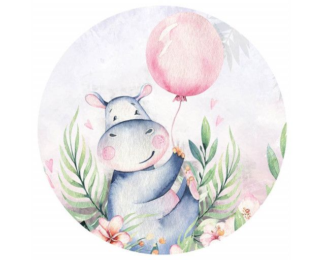 Fleur de kinderkamer helemaal op met een behangcirkel van dit vrolijke nijlpaardje, zittend tussen de bloemetjes.