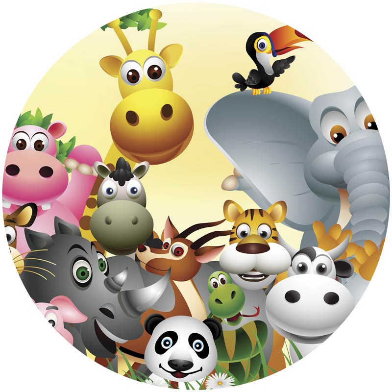 Een schitterende behangcirkel vol met allemaal vrolijke dieren die nieuwsgierig bij je slaapkamer naar binnen kijken!