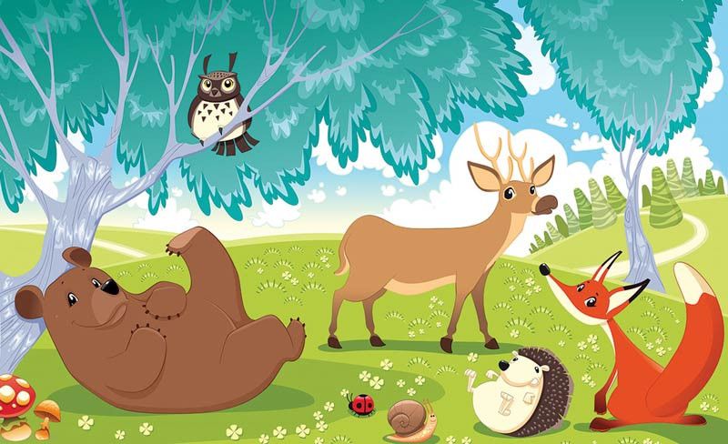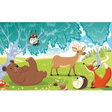 Het fotobehang van de dieren in het bos is echte eyecatcher in de: kinderkamer en babykamer.
