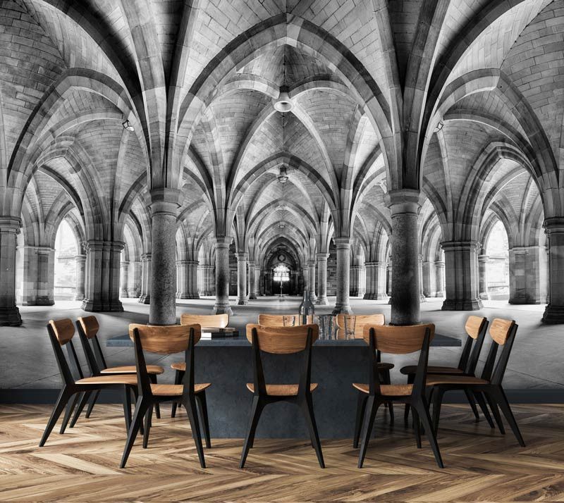 Het fotobehang van het gebouw zorgt voor een fantastisch 3d-effect in iedere ruimte.