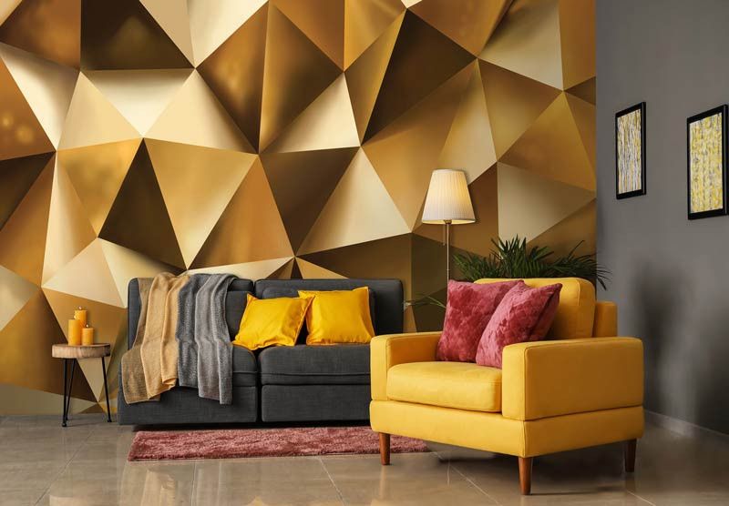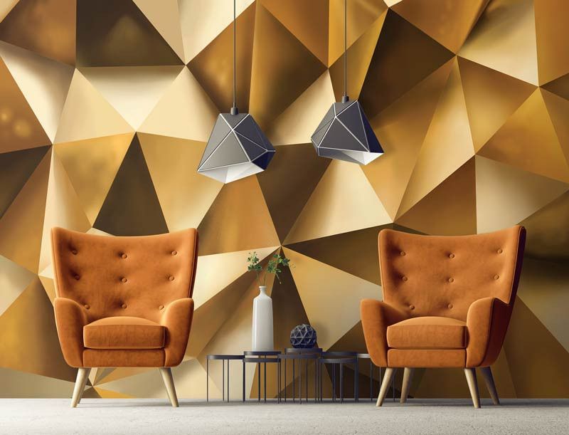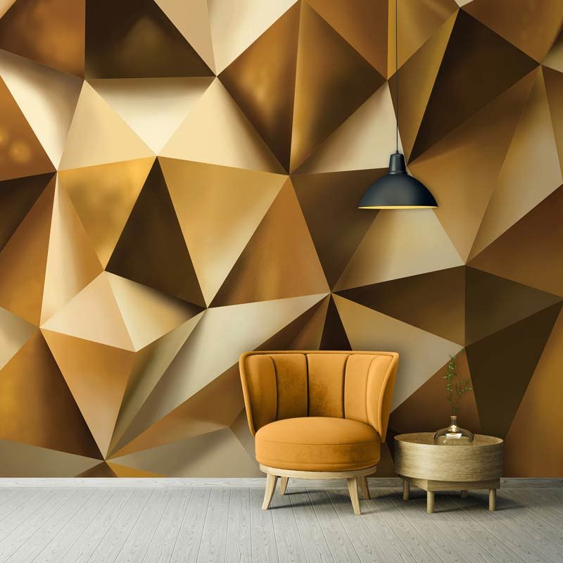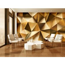 Vlies fotobehang van abstracte, goudkleurige, geometrische vormen.