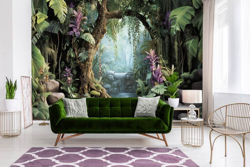 Het fotobehang is van hoogwaardige kwaliteit, met levendige kleuren en scherpe details die de jungle op een spectaculaire manier weergeven. Bestel het eenvoudig op maat door je afmetingen in te voeren en het gewenste deel van het ontwerp te selecteren. Creëer een exotische en avontuurlijke sfeer in jouw interieur met dit bijzondere fotobehang.