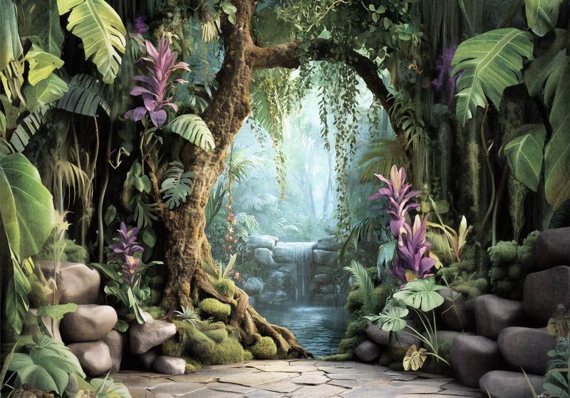 Dompel jezelf onder in een tropisch avontuur met ons Fotobehang 3D Jungle Avontuur. Dit unieke ontwerp brengt de jungle tot leven met een indrukwekkend driedimensionaal effect. Een waterval, exotische planten en dieptewerking creëren het gevoel dat je midden in de natuur staat. Perfect voor liefhebbers van tropische thema’s en een echte blikvanger in elke ruimte.