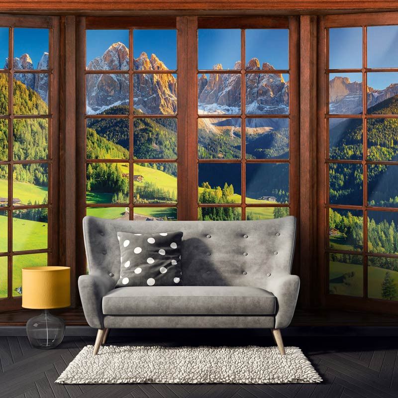 Geniet van een adembenemend uitzicht op de Alpen in je interieur met ons Fotobehang 3D Raamzicht op de Alpen. Dit verbluffende fotobehang toont een realistisch 3D-raamzicht op de majestueuze bergtoppen van de Alpen, waardoor een gevoel van ruimte en vrijheid ontstaat in elke kamer. Perfect voor liefhebbers van berglandschappen en panoramische decors, ideaal voor de woonkamer, slaapkamer of studeerkamer.