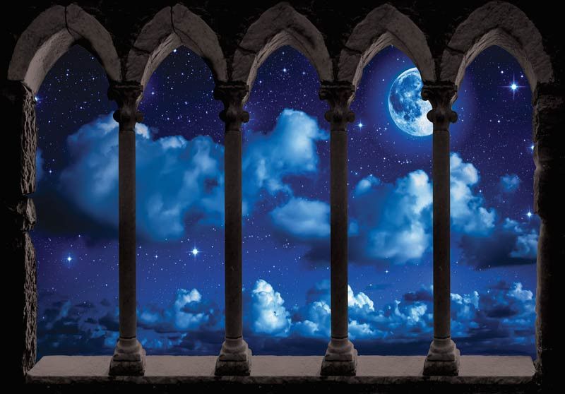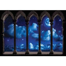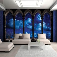Fotobehang 3D Uitzicht op de Maan en Sterren