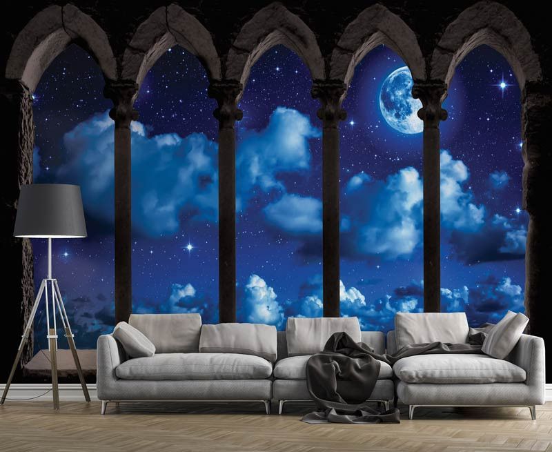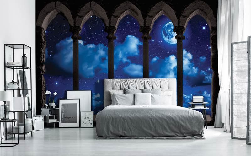 Verken de oneindigheid van de ruimte met dit fotobehang dat de maan en sterren toont in 3D. Ideaal voor sciencefictionliefhebbers en kinderkamers, het creëert een magische en mysterieuze sfeer.