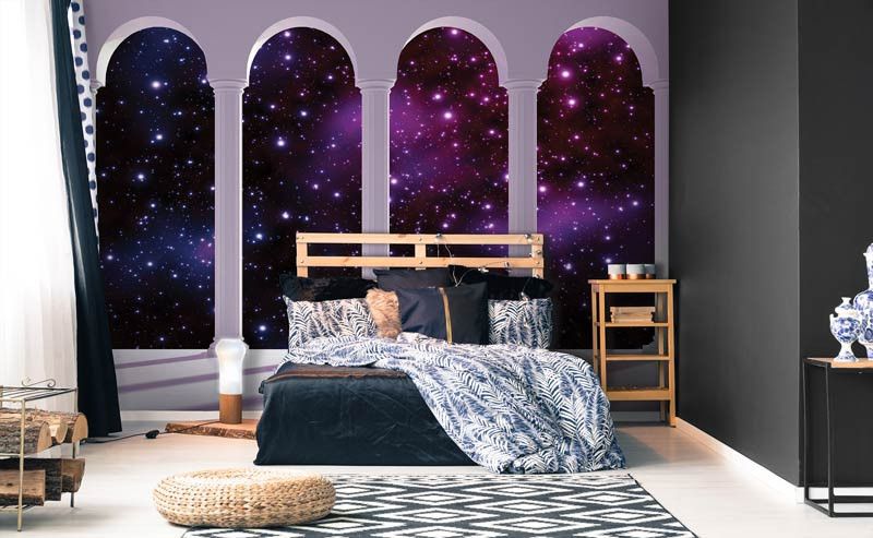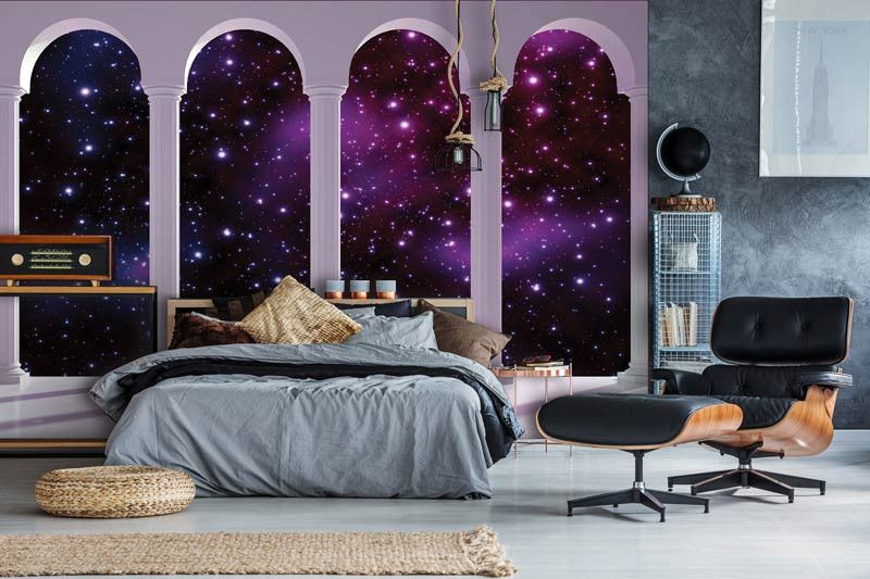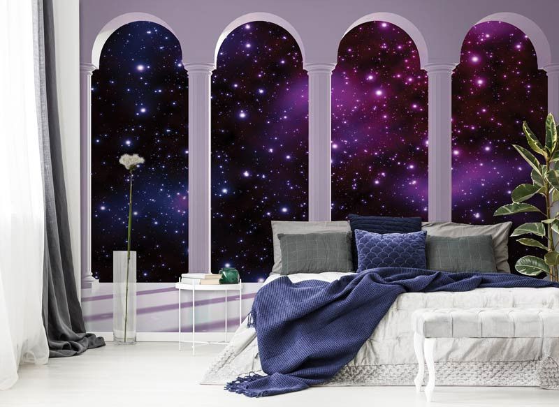 Ga op een intergalactisch avontuur met dit 3D-fotobehang van de sterrenhemel. De diepte van de ruimte wordt realistisch weergegeven, waardoor het ideaal is voor de kinderkamer, gamekamer of slaapkamer.
