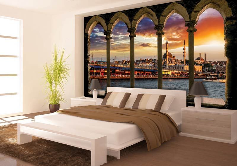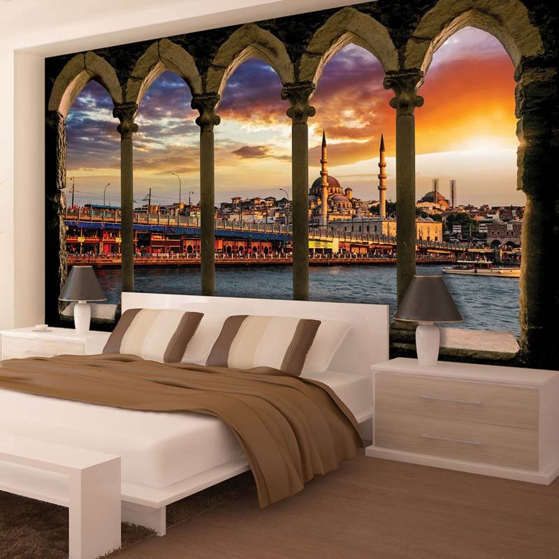 Ervaar de historische pracht van Istanbul met dit prachtige 3D-fotobehang. De levendige weergave van de stad en zijn monumenten brengt een sfeer van cultuur en elegantie in je interieur, ideaal voor de woonkamer of kantoor.
