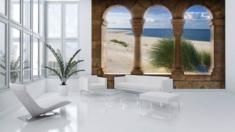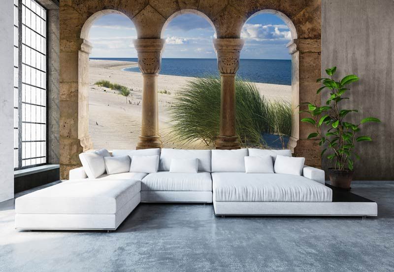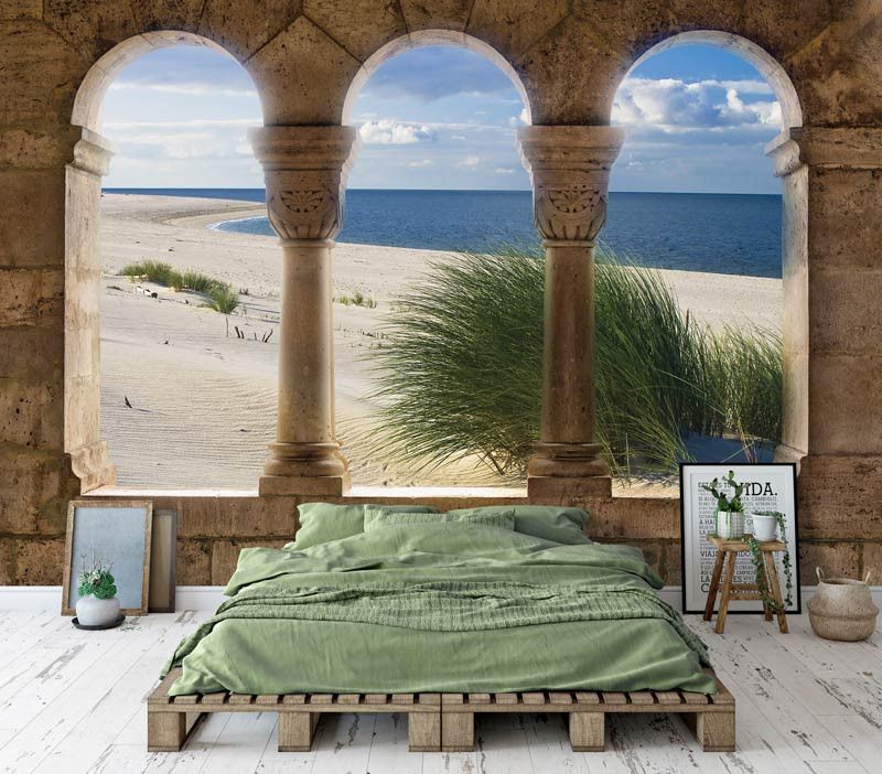 Breng het ultieme strandgevoel naar je ruimte met dit 3D-fotobehang. Met een serene horizon van zee en zand creëert dit fotobehang een kalmerende en uitnodigende sfeer in elke kamer, ideaal voor de woonkamer, slaapkamer of een ontspanningsruimte.