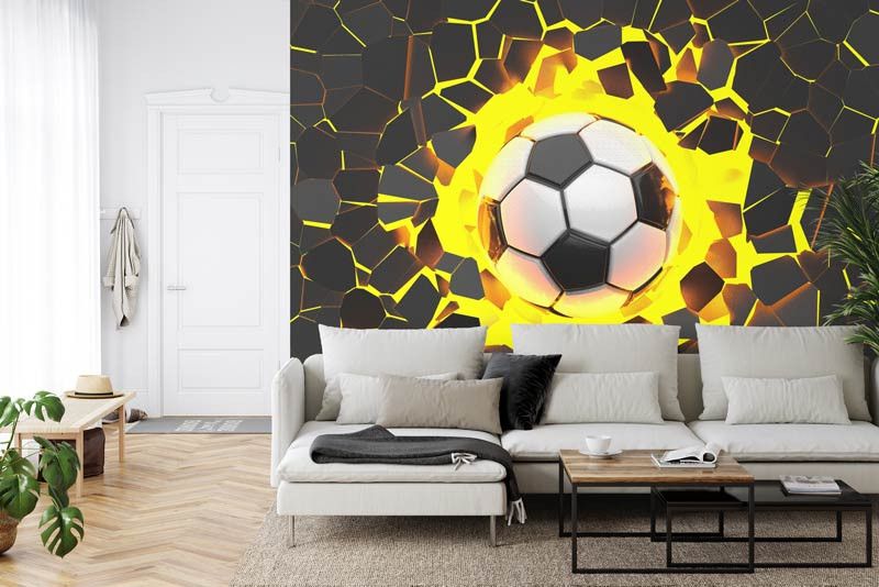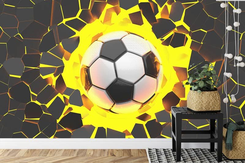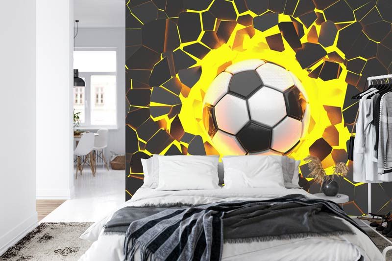 Geef de kinderkamer een nieuwe dimensie van plezier en verbeelding met ons betoverende 3D voetbal fotobehang. Laat uw kind zich onderdompelen in de wereld van het voetbal terwijl een realistische 3D voetbal lijkt te zijn ingebed in de muur, voor een interactieve en levendige uitstraling.