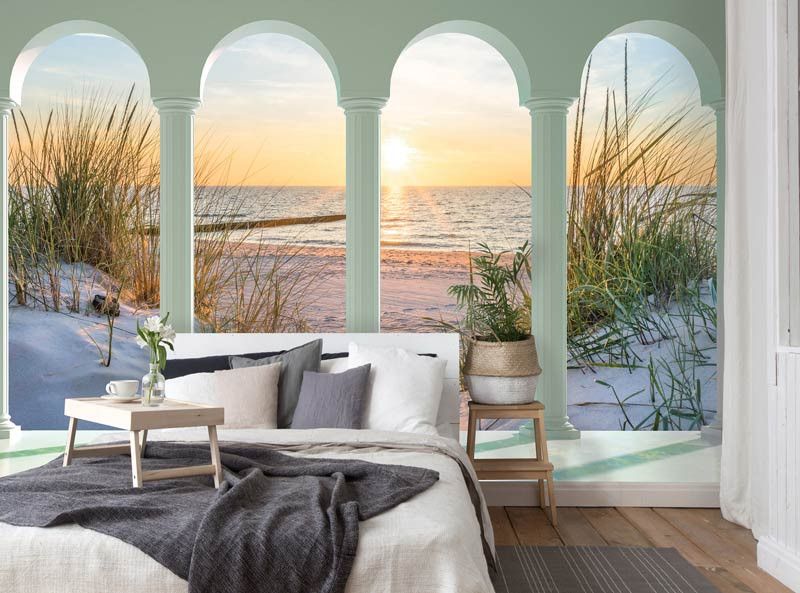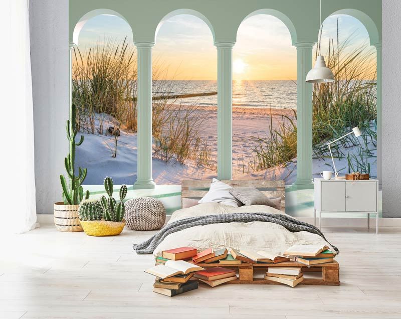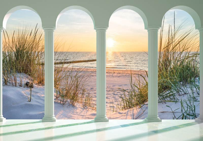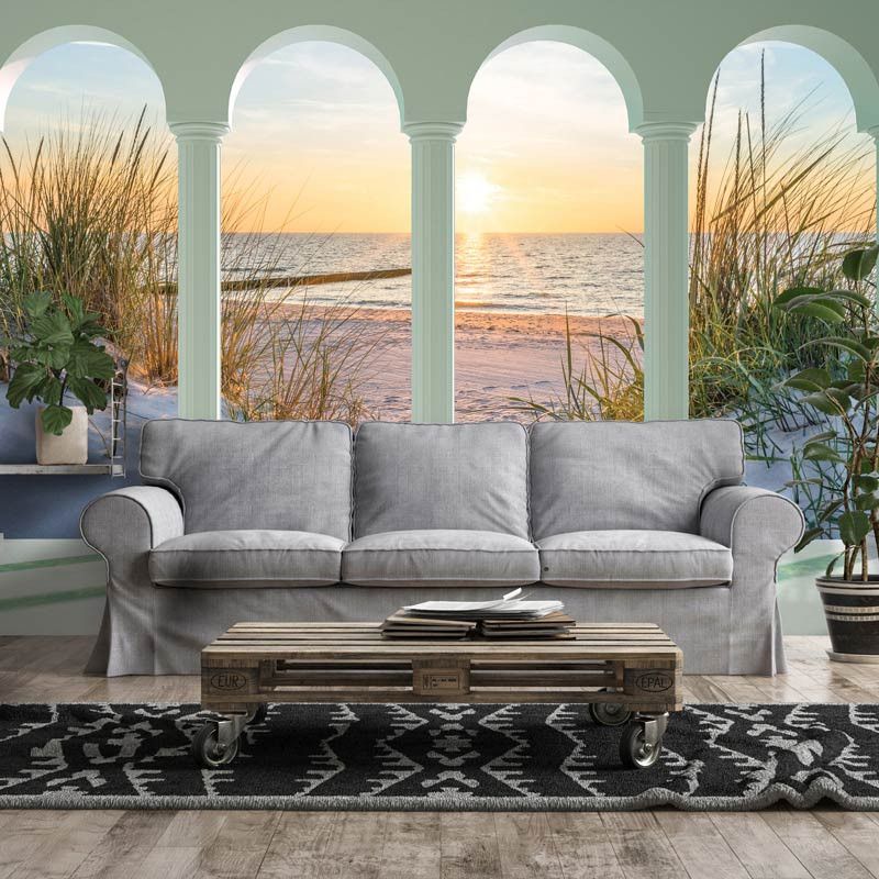 Fotobehang 3D Zicht op de Duinen, Strand en Zee