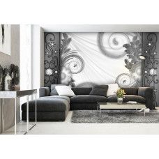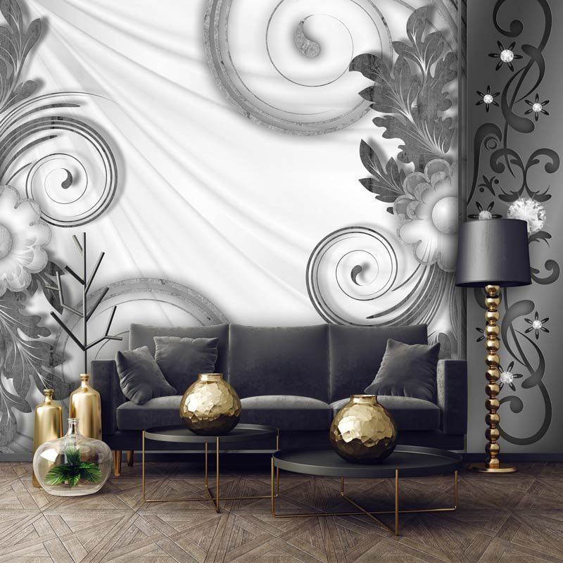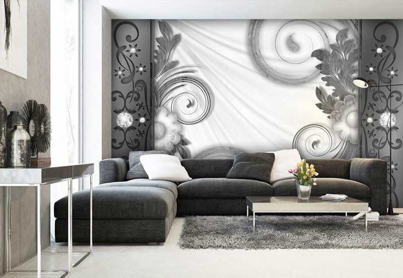 Vlies fotobehang van prachtige, sierlijke, abstracte kunst met daarin verwerkt: bloemen en diamanten.