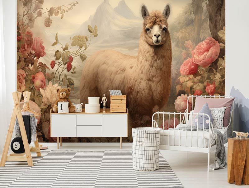 Met ons fotobehang op maat kun je elke muur omtoveren tot een waar kunstwerk. De hoogwaardige afdrukken en duurzame materialen zorgen voor een langdurige en levendige muurdecoratie. Laat je inspireren door de lieflijke wereld van alpaca's en bloemen met dit charmante fotobehang.