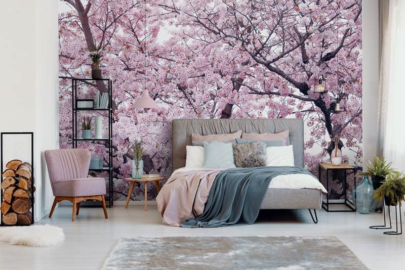 Het fotobehang van de bloemen is een unieke aanvulling op elke ruimte.
