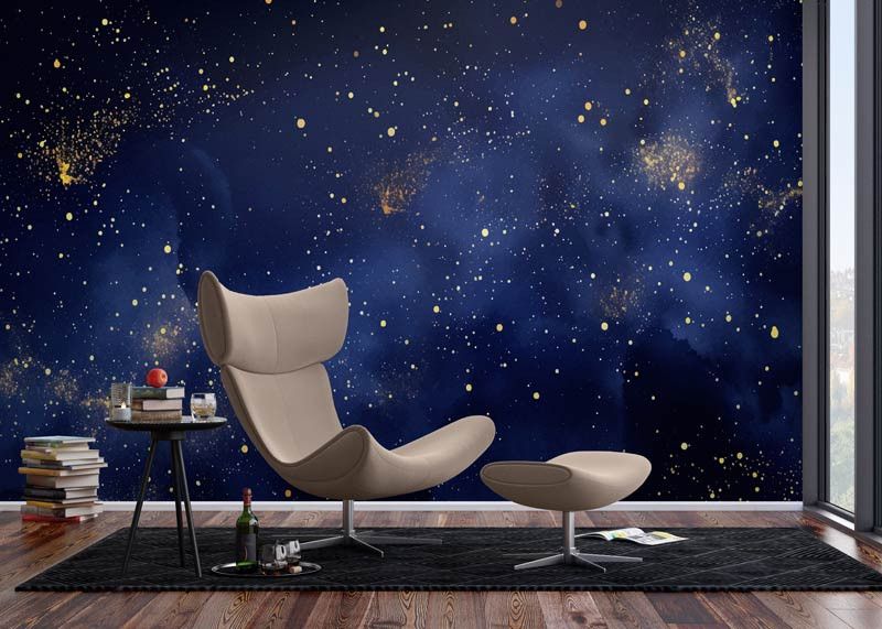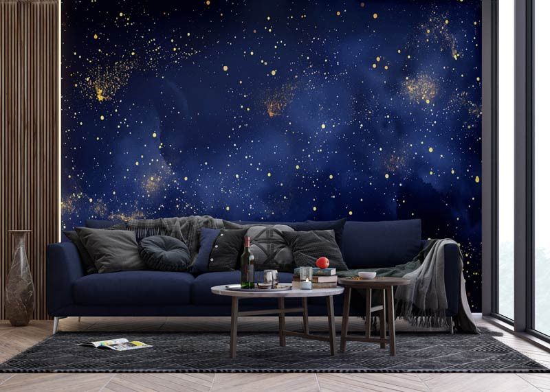 Breng de magie van de nacht tot leven met het fotobehang Aquarel Sterrenhemel. De dromerige blauwe en paarse tinten, gecombineerd met fonkelende sterren, zorgen voor een mystieke en rustgevende sfeer. De aquarelstijl geeft het behang een artistieke en speelse uitstraling, waardoor het een sfeervolle toevoeging is aan elke ruimte.