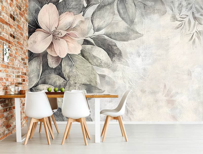 Geïnspireerd door kunst en natuur brengt dit fotobehang een artistiek bloemmotief tot leven op je muur. De combinatie van gestileerde bloemvormen met verfijnde lijnen en elegante kleuren zorgt voor een expressieve, maar zachte uitstraling.