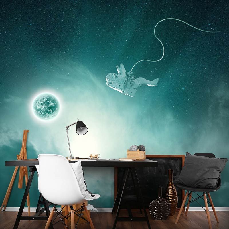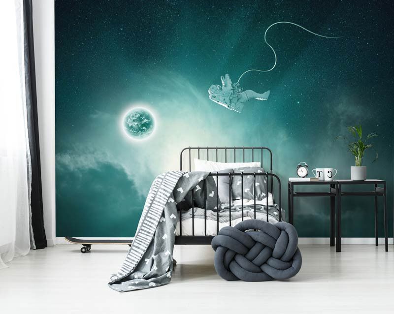 Transformeer uw kamer met ons adembenemende fotobehang van een astronaut in de ruimte. Dit fotobehang zal een buitenaardse sfeer aan uw kamer toevoegen en is perfect voor ruimteliefhebbers en avonturiers.