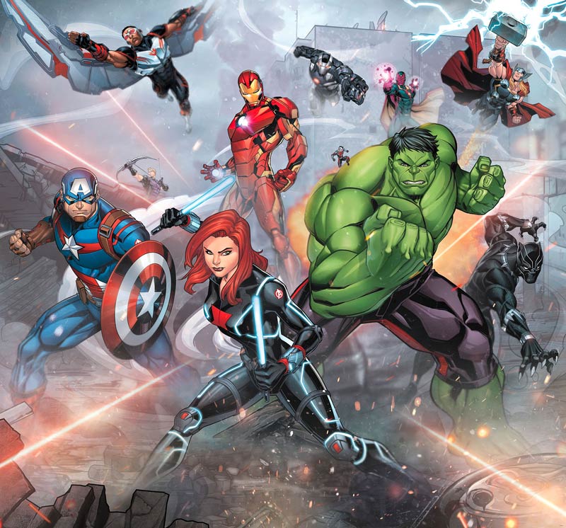 In het puin van de stad ontketenen de Marvel-superhelden hun krachten.