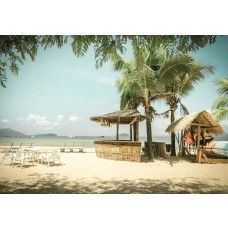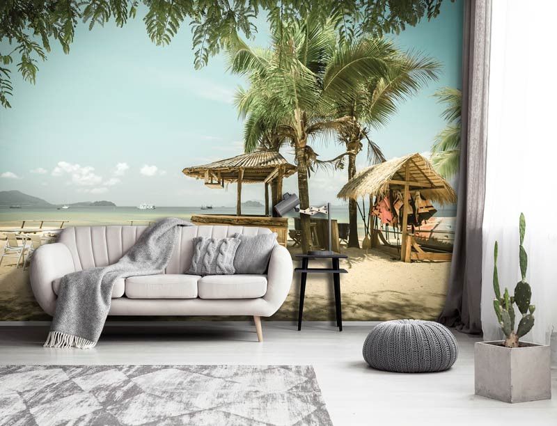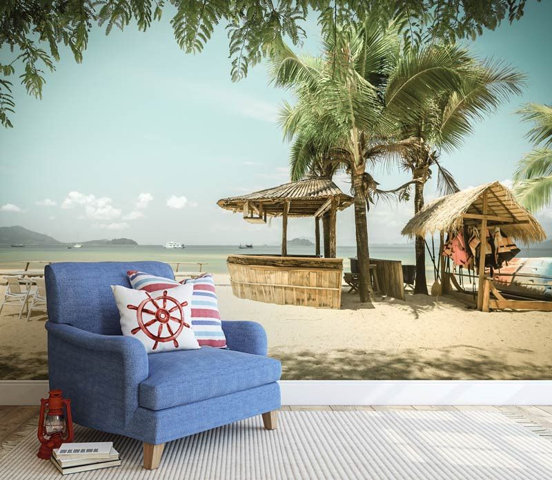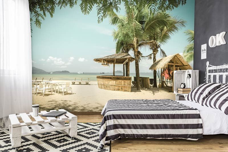 Het fotobehang van de strandbar is een echte eyecatcher en is de perfecte aanvulling op iedere ruimte.