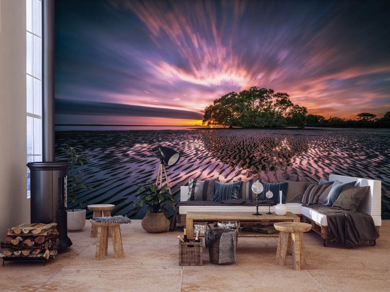 Fotobehang van het prachtige strand waarbij het zojuist eb is geworden.