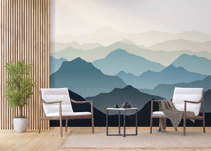 Ontdek de schoonheid van een bergachtig landschap met dit kunstzinnige fotobehang. De illustratieve stijl en warme kleuren brengen een rustieke sfeer in de ruimte. Dit behang is gemakkelijk op maat te bestellen, ideaal voor woonkamers en werkruimtes.