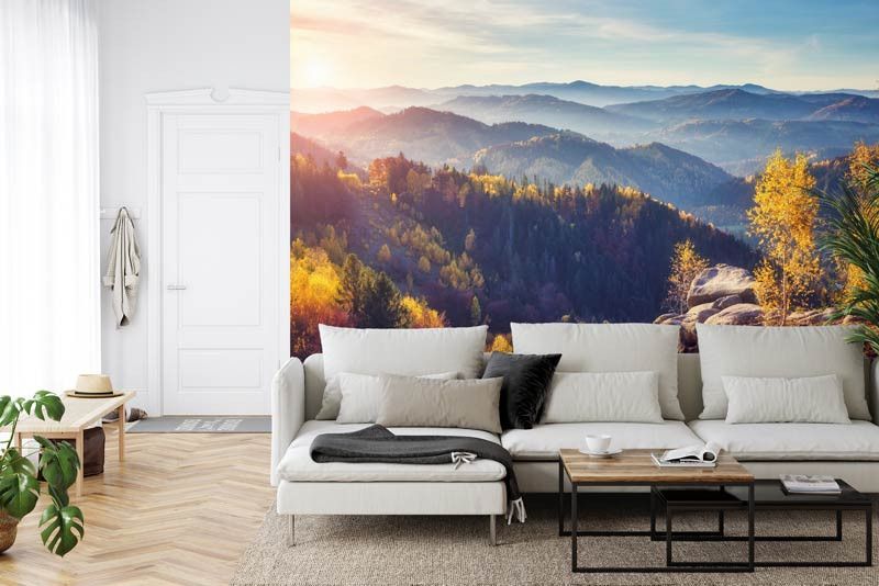 Ontdek de harmonie tussen bergen en bos met Fotobehang Bergen en Bospracht. Laat je inspireren door de natuurlijke schoonheid en creëer een rustgevende sfeer in je interieur.