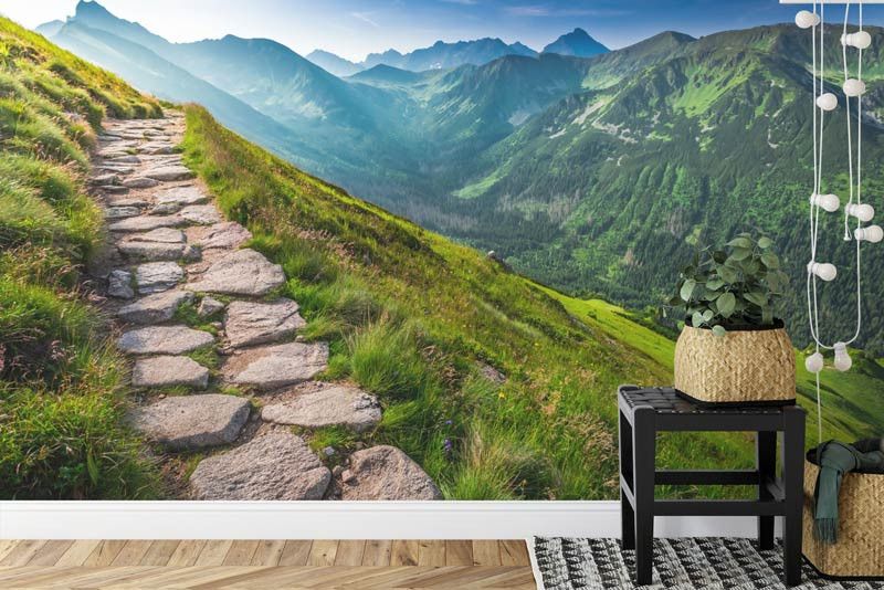 Volg het spoor van de natuur met ons op maat gemaakte Fotobehang Bergpad langs de Bergtoppen. Dit adembenemende ontwerp brengt de majestueuze schoonheid van bergpaden rechtstreeks in je interieur, waardoor elke ruimte een vleugje natuurlijke sereniteit krijgt.