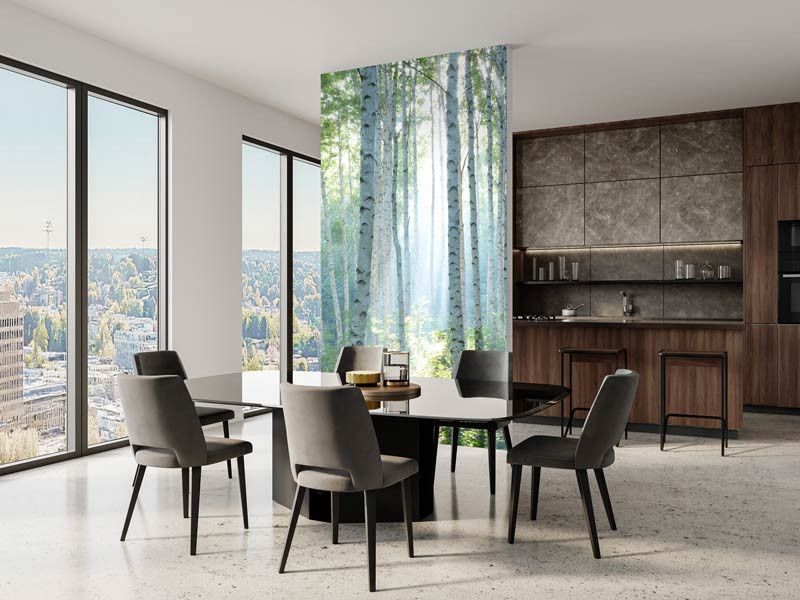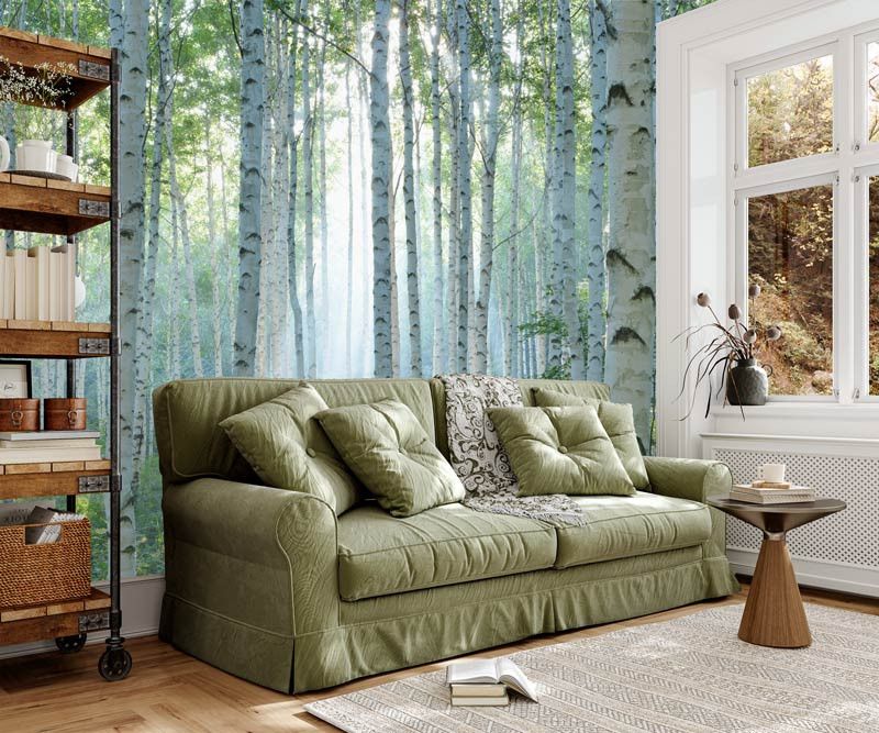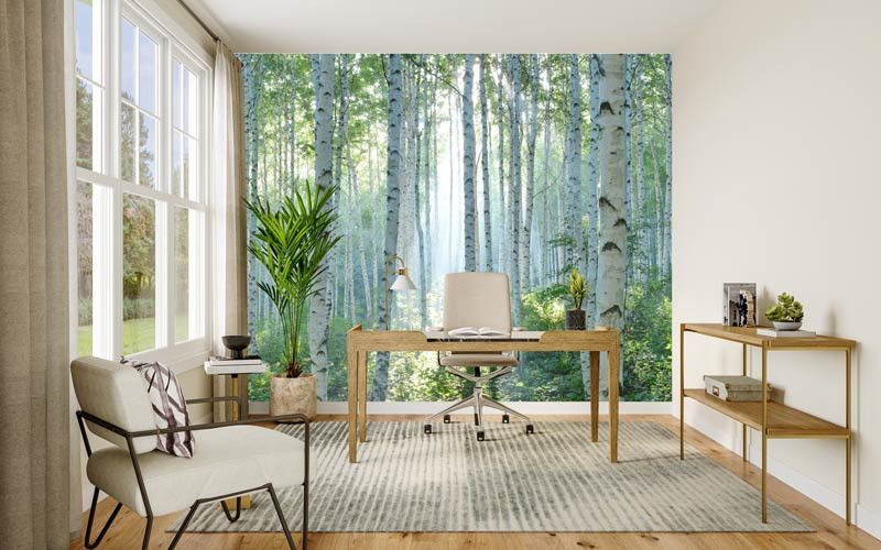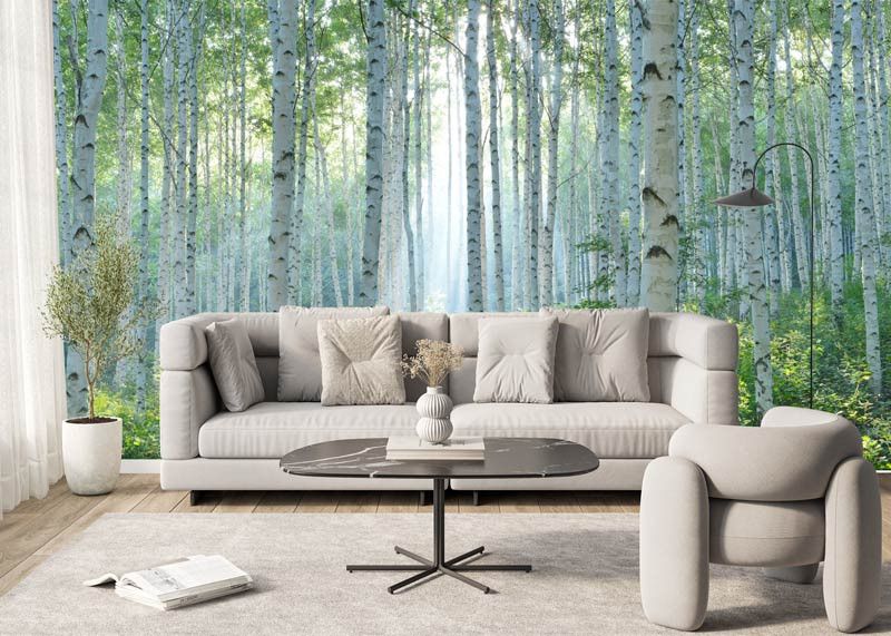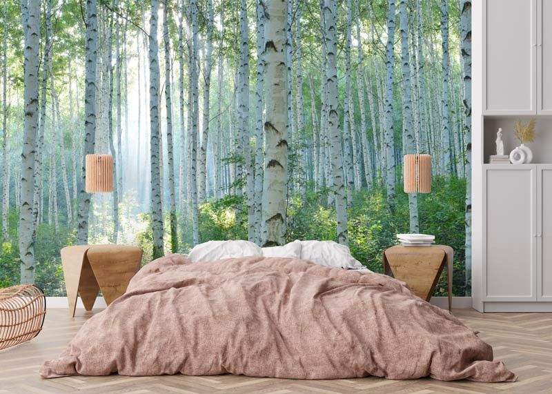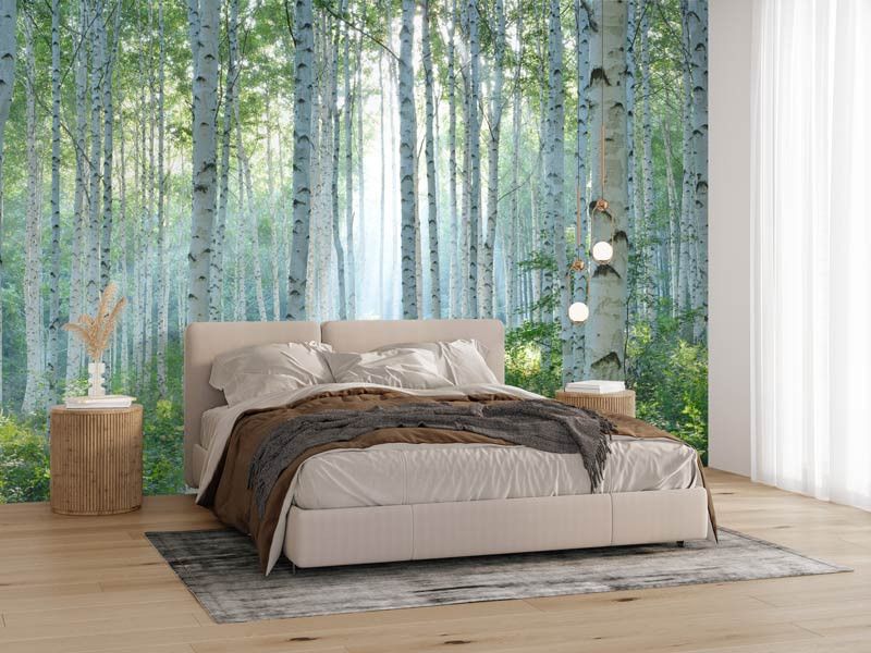 De combinatie van de ranke, witte boomstammen en het frisse groen van het bladerdek zorgt voor een natuurlijke harmonie die elke ruimte groter en lichter doet lijken. Het fotobehang brengt een kalme en frisse sfeer, alsof je zelf midden in het bos staat. Dankzij de subtiele lichtinval komt de natuur op een levensechte manier tot leven in je interieur.