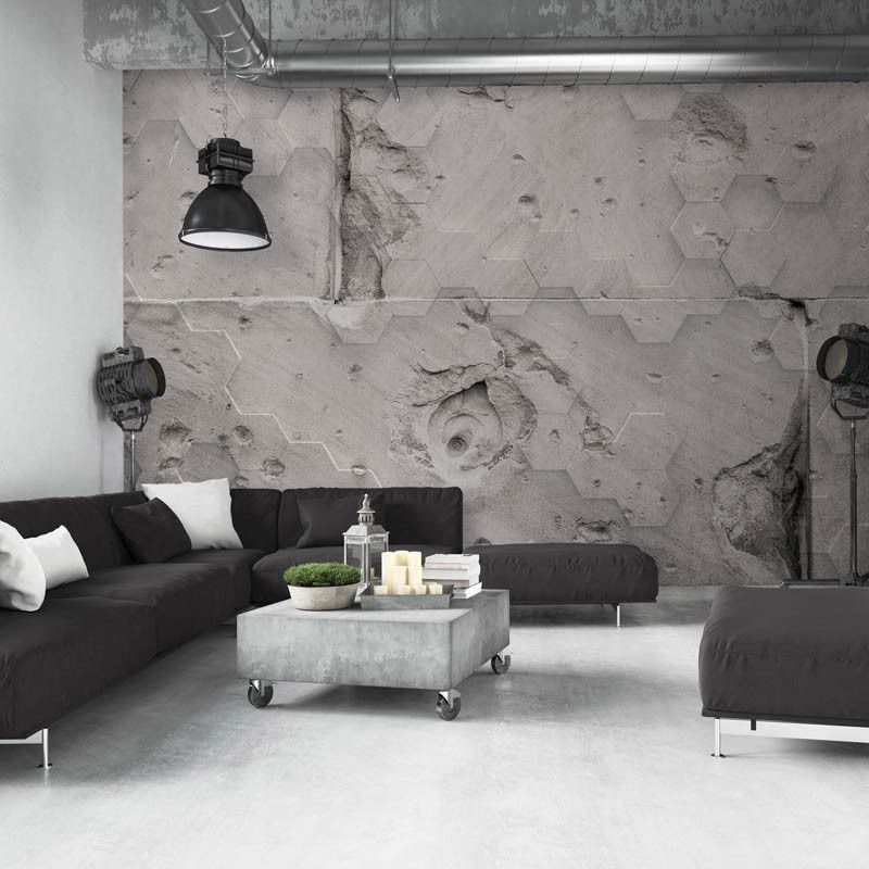 Het fotobehang van de betonnen muur zorgt voor een industriële uitstraling in de: woonkamer, slaapkamer, hobbykamer, keuken, hal, kantoor of iedere andere ruimte.