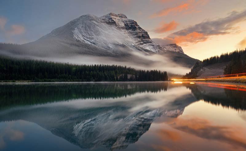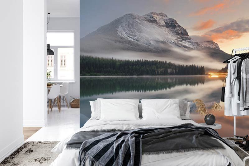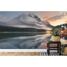 Dompel jezelf onder in de serene pracht van de natuur met Fotobehang Betoverend Bergmeer. Laat je betoveren door de weerspiegeling van de bergtoppen in het kalme water van het meer, en creëer een atmosferische setting in je interieur.