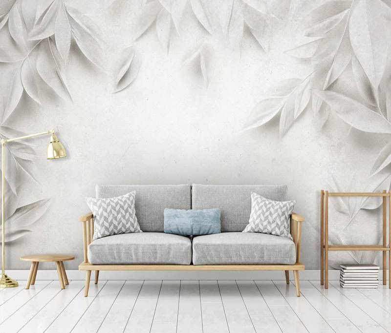 Fotobehang Bladpatroon in Ton-sur-ton Stijl