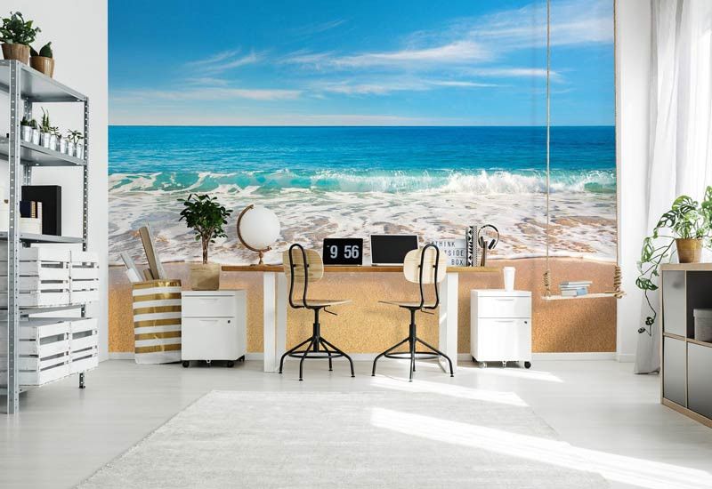 Breng de rustgevende energie van de oceaan in je interieur met ons Fotobehang Blauwe Zee en Strand. Dit betoverende ontwerp toont een ongerepte kustlijn met zacht zand en helderblauw water, wat een kalme en verfrissende sfeer creëert in elke kamer. Ideaal voor badkamers, slaapkamers of woonkamers die een vleugje strand nodig hebben.