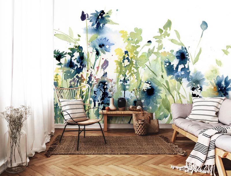Breng een zachte en verfijnde sfeer in je interieur met het fotobehang Bloemen in Aquarel. De delicate waterverfdetails en subtiele tinten creëren een romantische, bijna dromerige uitstraling. Dit ontwerp straalt rust en elegantie uit, perfect om je ruimte een serene ambiance te geven.