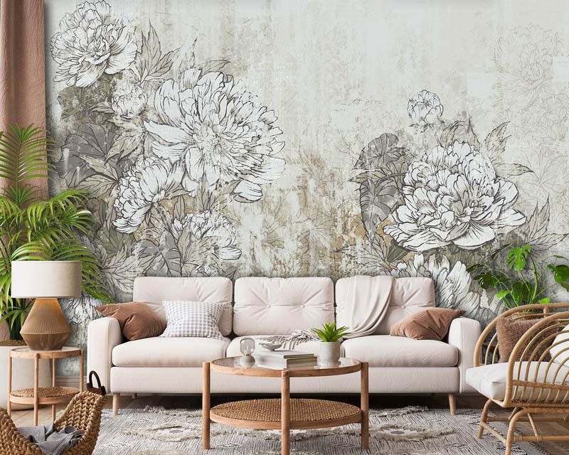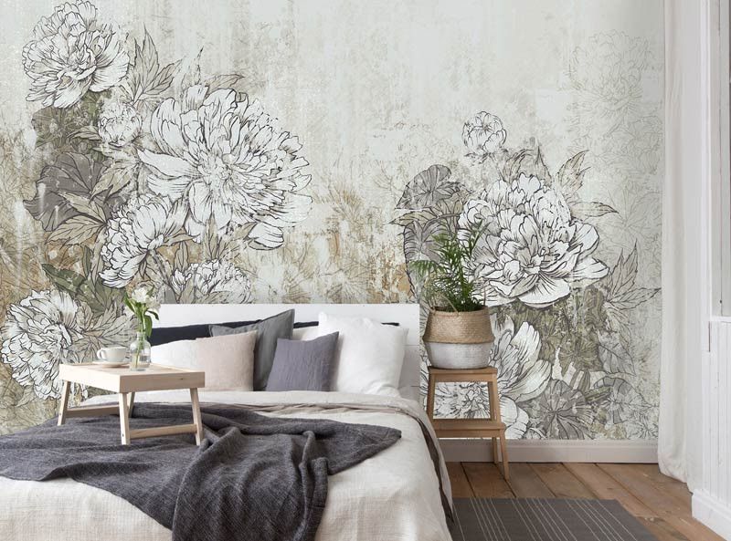 Bestel eenvoudig op maat voor een perfecte pasvorm in elke kamer en geniet van de hoogwaardige afdrukkwaliteit die de levendige kleuren van de bloemen en de textuur van het beton prachtig tot leven brengt.