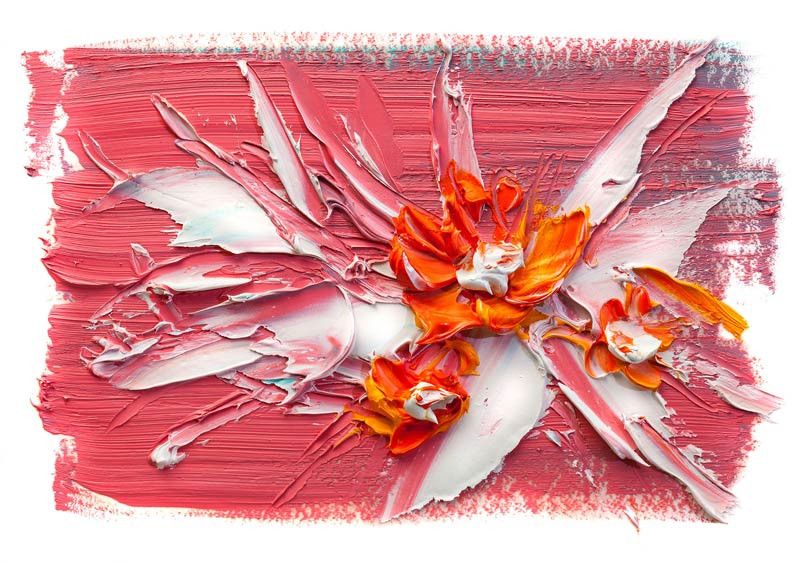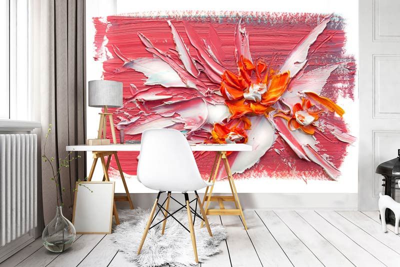 Vliesbehang van een prachtig, abstract schilderij met daarop een aantal felgekleurde bloemen. Het fotobehang van dit kunstwerk is een echte eyecatcher in de: woonkamer, slaapkamer, kantoor, hal, keuken of iedere andere ruimte.