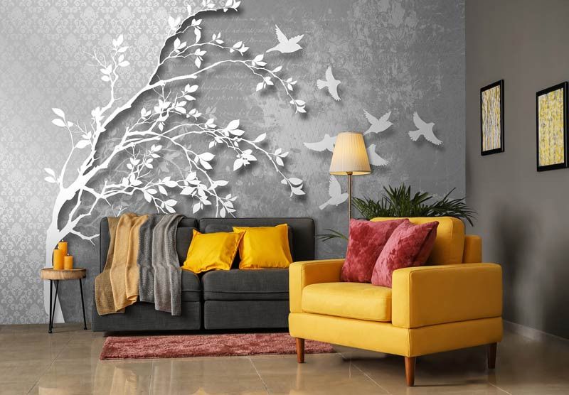 Fotobehang Boom met Vogels Zilver