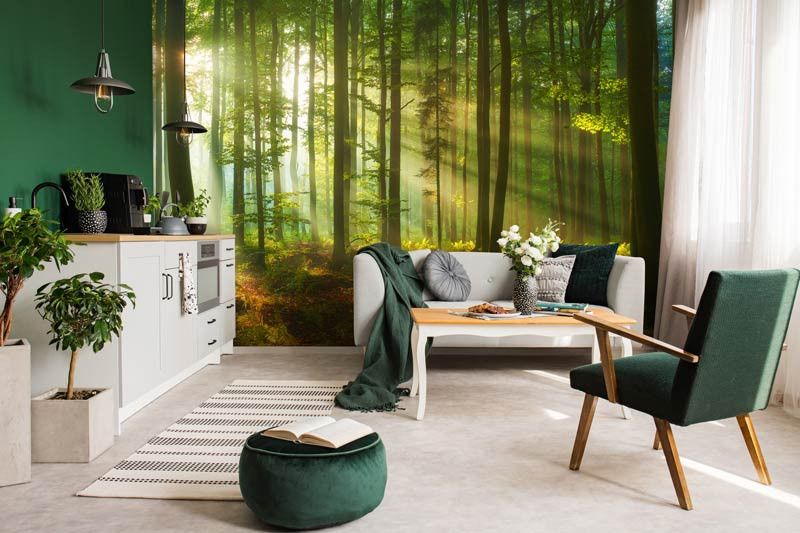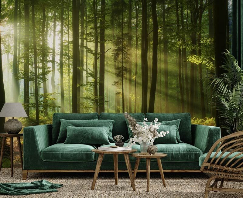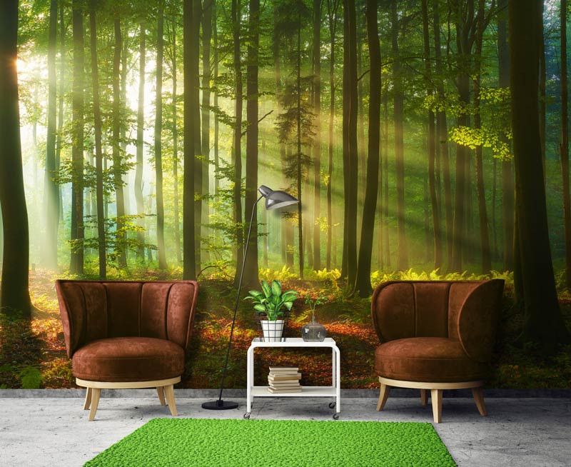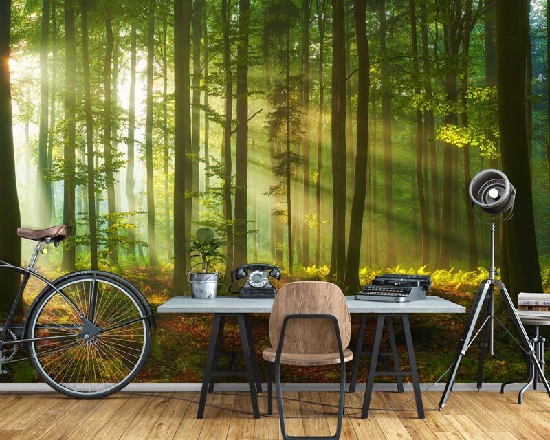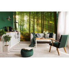 Dit fotobehang is van hoge kwaliteit en biedt een levendige weergave van kleuren en details, waardoor elk blad en elke lichtstraal haarscherp zichtbaar is. De diepe groenen en warme bruintinten worden prachtig weergegeven, waardoor het behang een realistisch en meeslepend effect heeft. Het fotobehang is op maat te bestellen en verkrijgbaar op vliesbehang, vinylbehang en Airtex naadloos behang, zodat het perfect aansluit op jouw muur en de natuurlijke schoonheid van het bos in elk detail tot uiting komt.